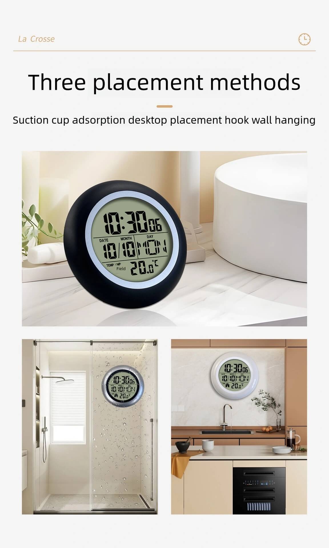 As someone who rents, I can't drill into walls—but this suction-mounted clock is a game changer. Strong hold, modern look, and the IPX4 rating gives peace of mind near the sink. Perfect size for quick glances during morning routines or coffee breaks.