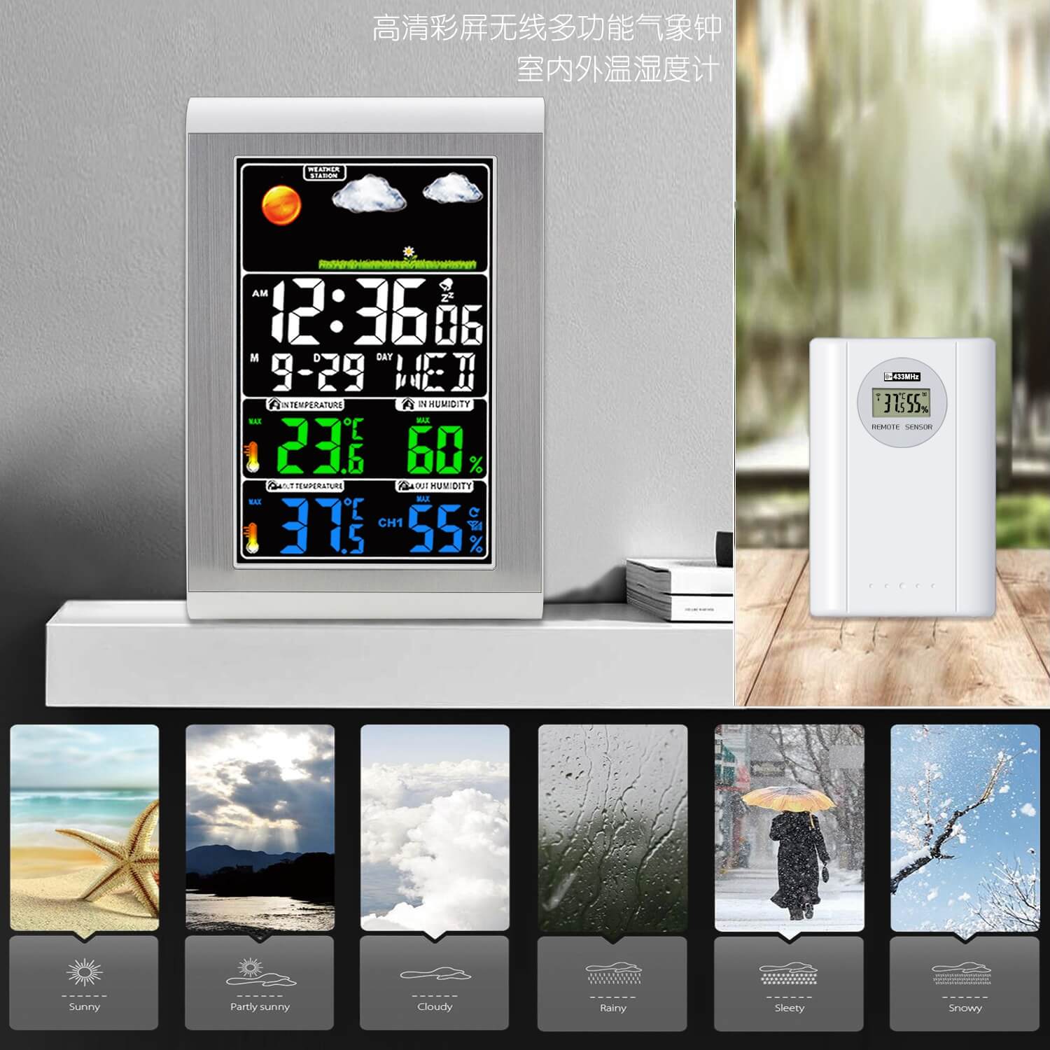 Multifunctional Display: Color-coded icons for quick weather trend forecasts, plus time, date, and alarm clock functions.
